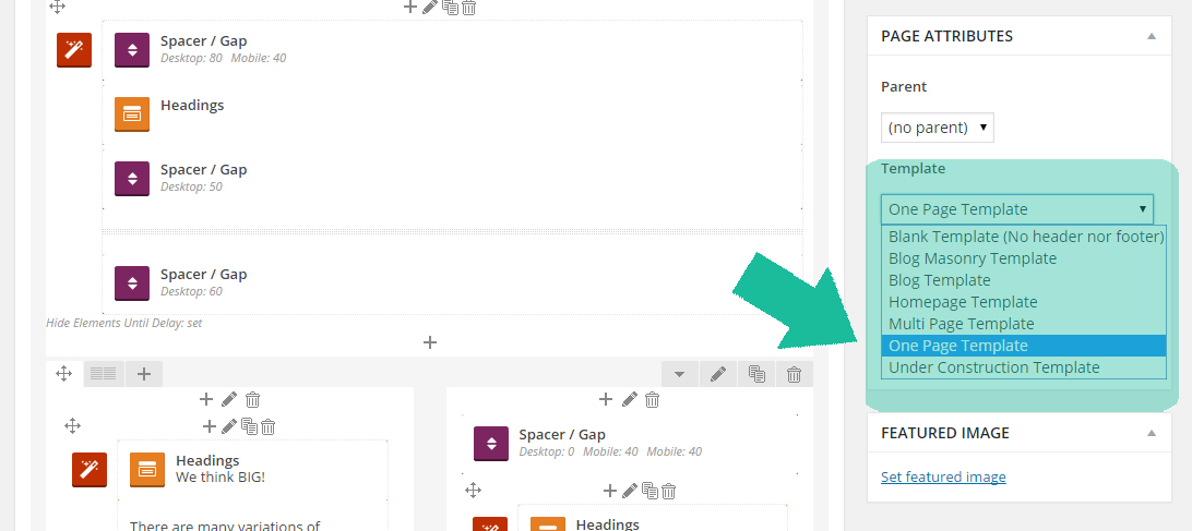 Blake allow you have one or multi page websites. The system is easy, we use normal wordpress pages, that works like pages (multipage) or sections (one page). On each page you create, you need to choose the template for your page. One Page Template or Multi Page Template