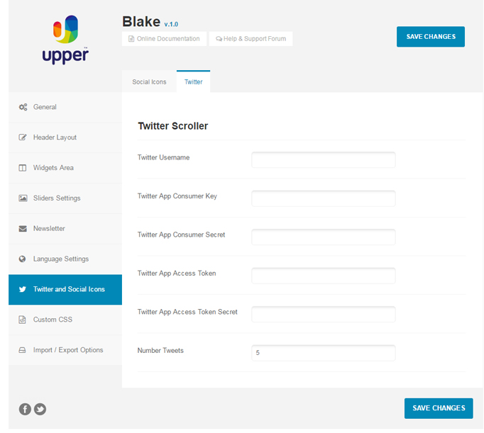 - 4. Fill the data into the Admin Panel > Twitter & Social Icons > Twitter